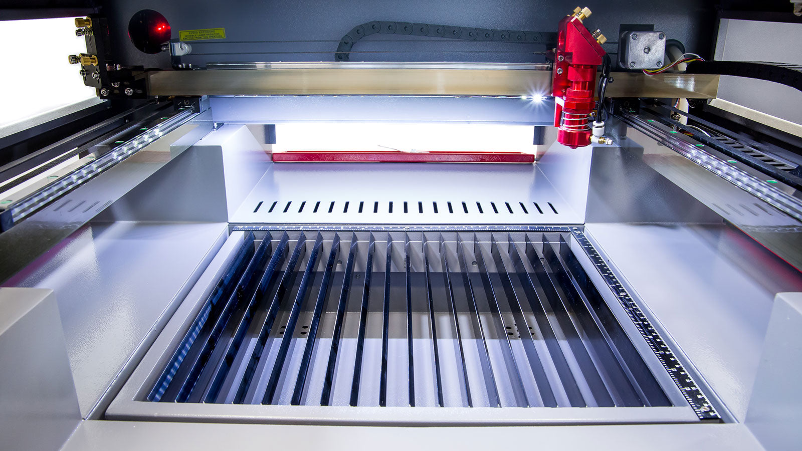 * Laser-able metal blanks have a coating or layer that the laser removes, revealing the design. This machine can process items like brass nameplates and powder-coated stainless steel tumblers.